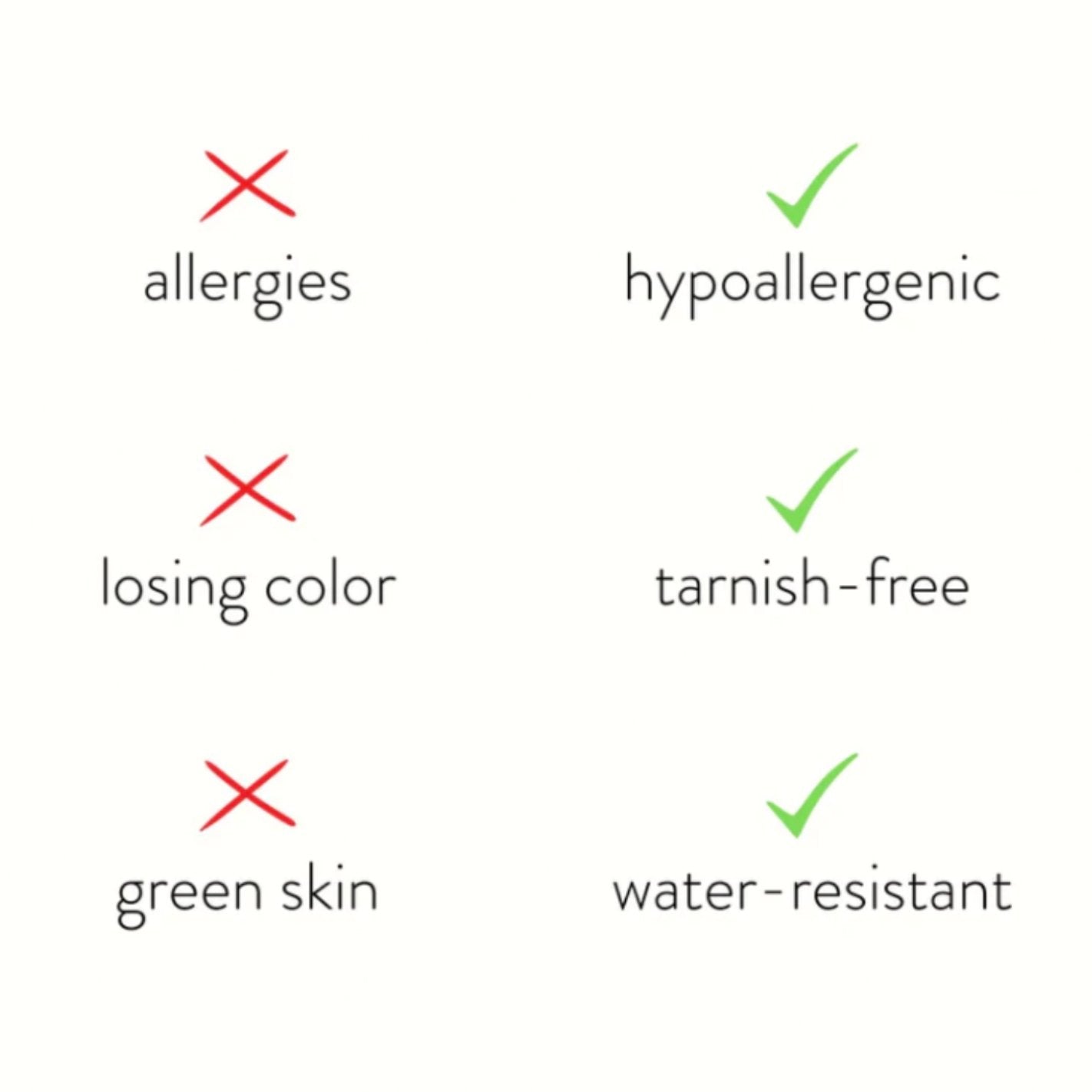 - アレルギー反応を引き起こさない、鉛とニッケルフリー