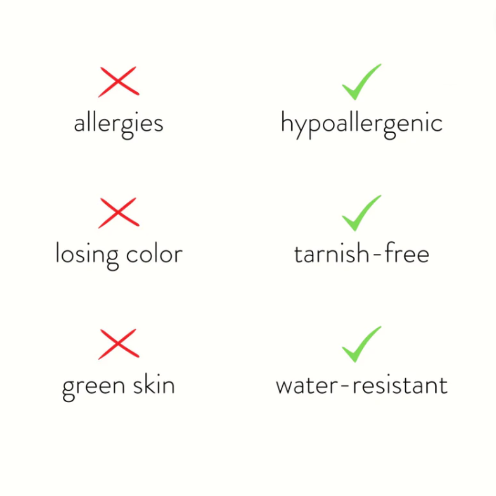 敏感肌に最適な、低アレルゲン、鉛フリー、ニッケルフリーです。